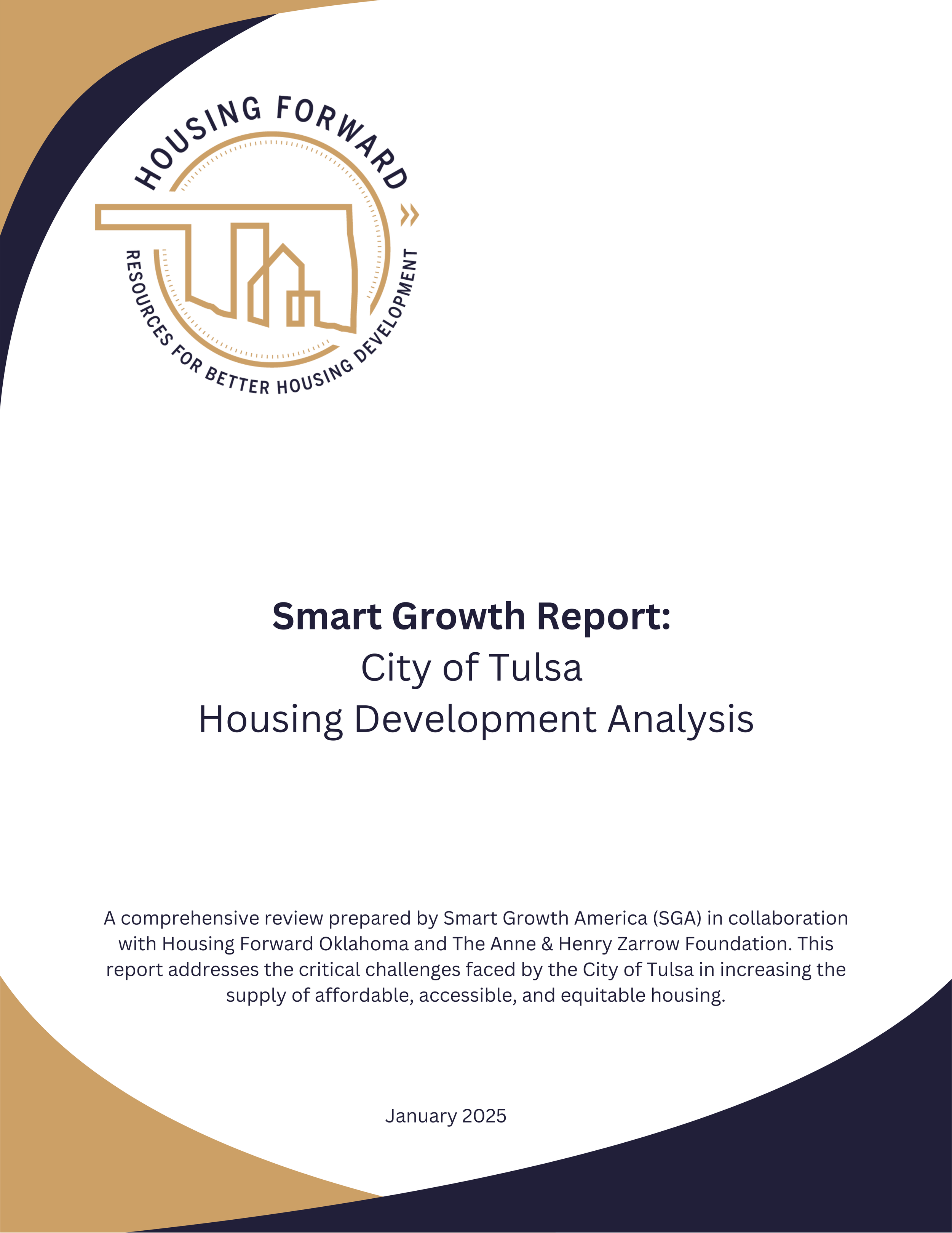 This comprehensive review was prepared by Smart Growth America (SGA) in collaboration with Housing Forward and The Anne & Henry Zarrow Foundation. It addresses the critical challenges faced by the City of Tulsa in increasing the supply of affordable, accessible, and equitable housing.
